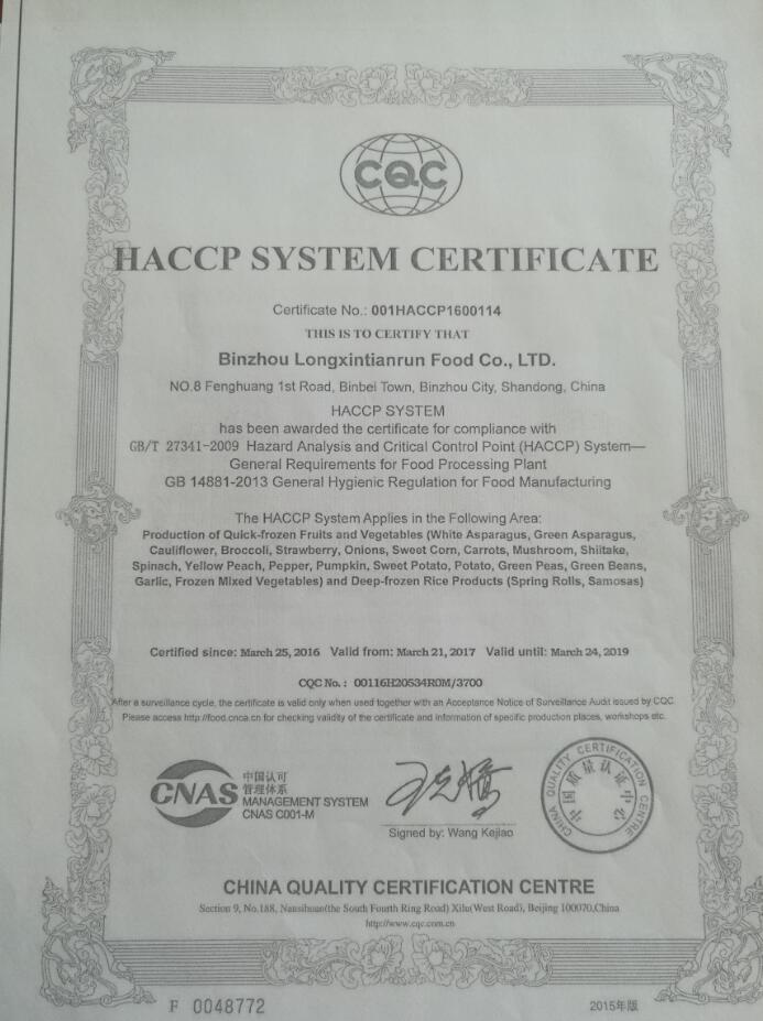 HACCP:國際上共同認可和接受的食品安全保證體系,在國際上被共同認可和接受,加拿大、泰國、越南、印度、澳大利亞、新西蘭、冰島、丹麥、巴西等強制推行HACCP體系。